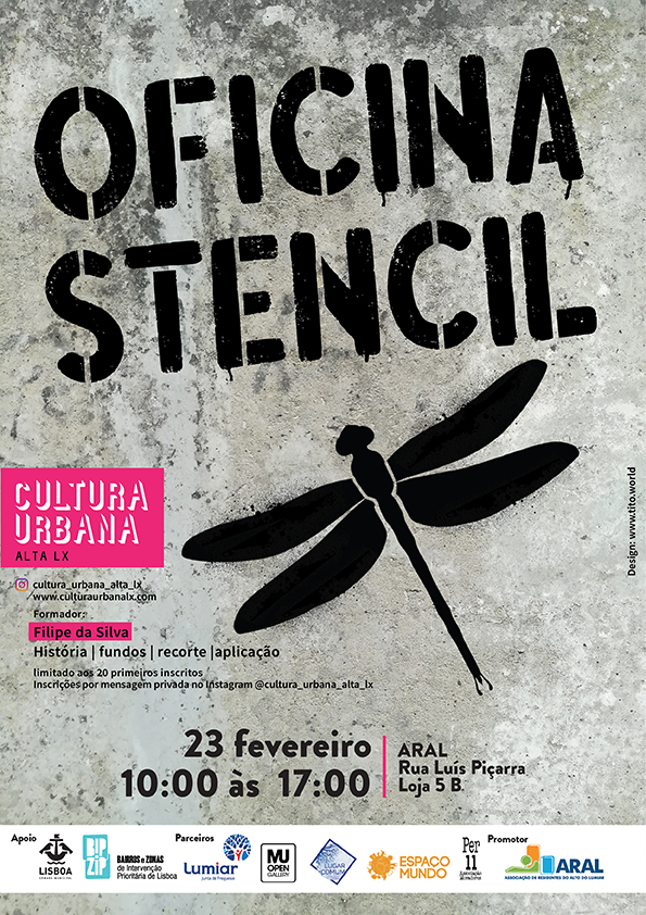 O Stencil foi a primeira oficina do projeto Cultura Urbana Alta Lx, no dia 23 de fevereiro. Preferência para que viver na Alta de Lisboa, gratuita e com almoço incluído.